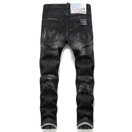 Punk Men's Jeans Hole Embroidery Five-pointed Star